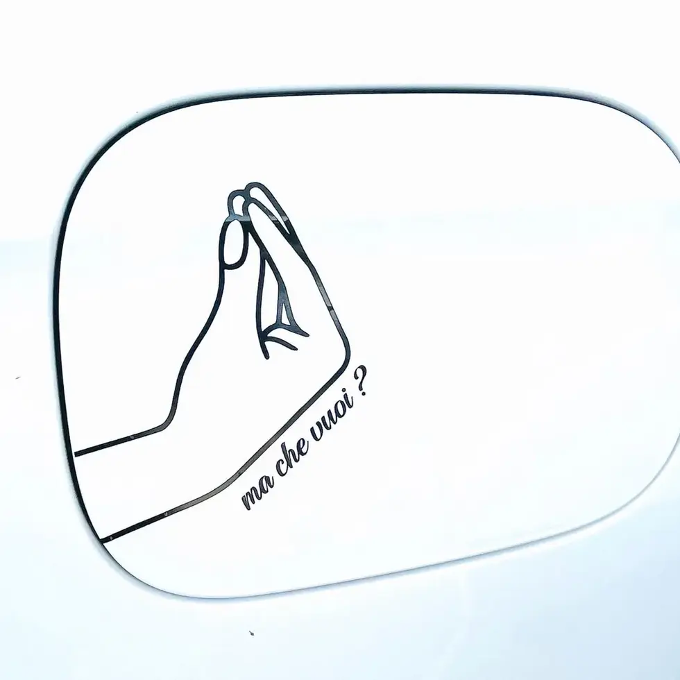 Setze ein stilvolles Statement mit unserem kultigen Autoaufkleber Italienische Handzeichen „Ma che vuoi?“ – inspiriert von der berühmten italienischen Handgeste. Ob auf der Heckklappe, am Tankdeckel oder einfach als auffälliges Detail am Auto: dieser Sticker zieht alle Blicke auf sich.